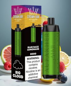 Al Fakher Crown Bar 8000 Crystal Disposable Vape – 18mL, 5mg, 8000 Puffs, Blueberry Gum