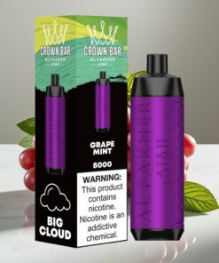 Al Fakher Crown Bar 8000 Crystal Disposable Vape Grape Mint – 18ml, 5mg, 8000 Puffs, USB-C