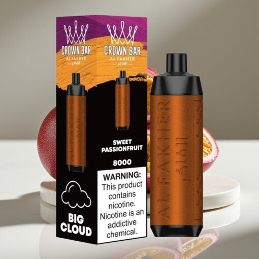 Al Fakher Crown Bar 8000 Crystal Disposable Vape – 18mL, 5mg, Sweet Passionfruit, 8000 Puffs