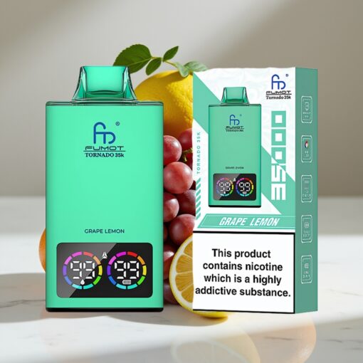 Fumot Tornado 35K Dual Mesh 15ml Grape Lemon Disposable Vape USB-C Fast Charging