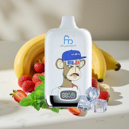 Fumot Tornado Digital Box 12000 Puffs Strawberry Banana Disposable Vape with Mesh Coil & Type-C Charging