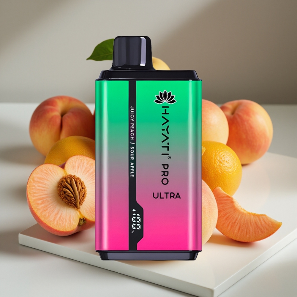Hayati Pro Ultra 15000 Puffs 24ml 2% Nicotine Sour Apple Juicy Peach Disposable Vape