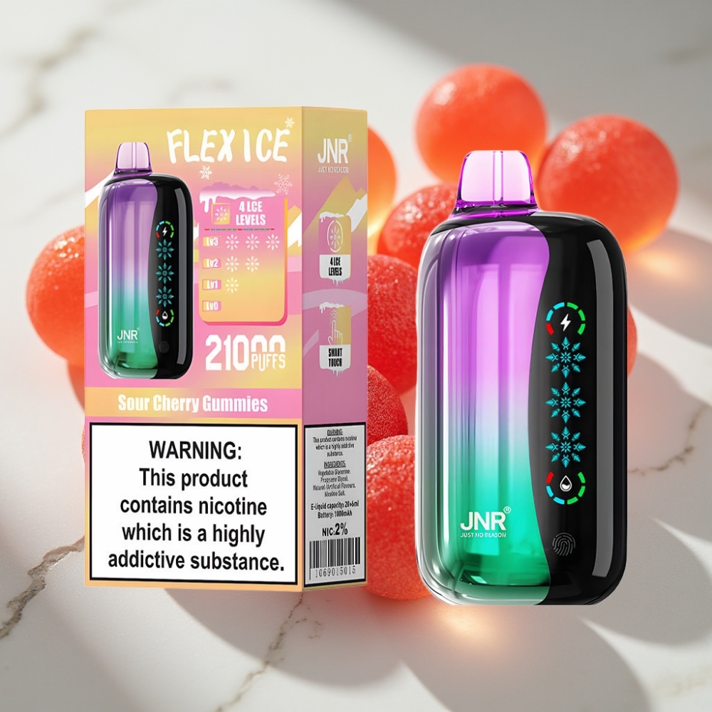 JNR Flex Ice 21000 Puffs Disposable Vape Sour Cherry Gummies, 26ml, Ice Adjustable, Type-C