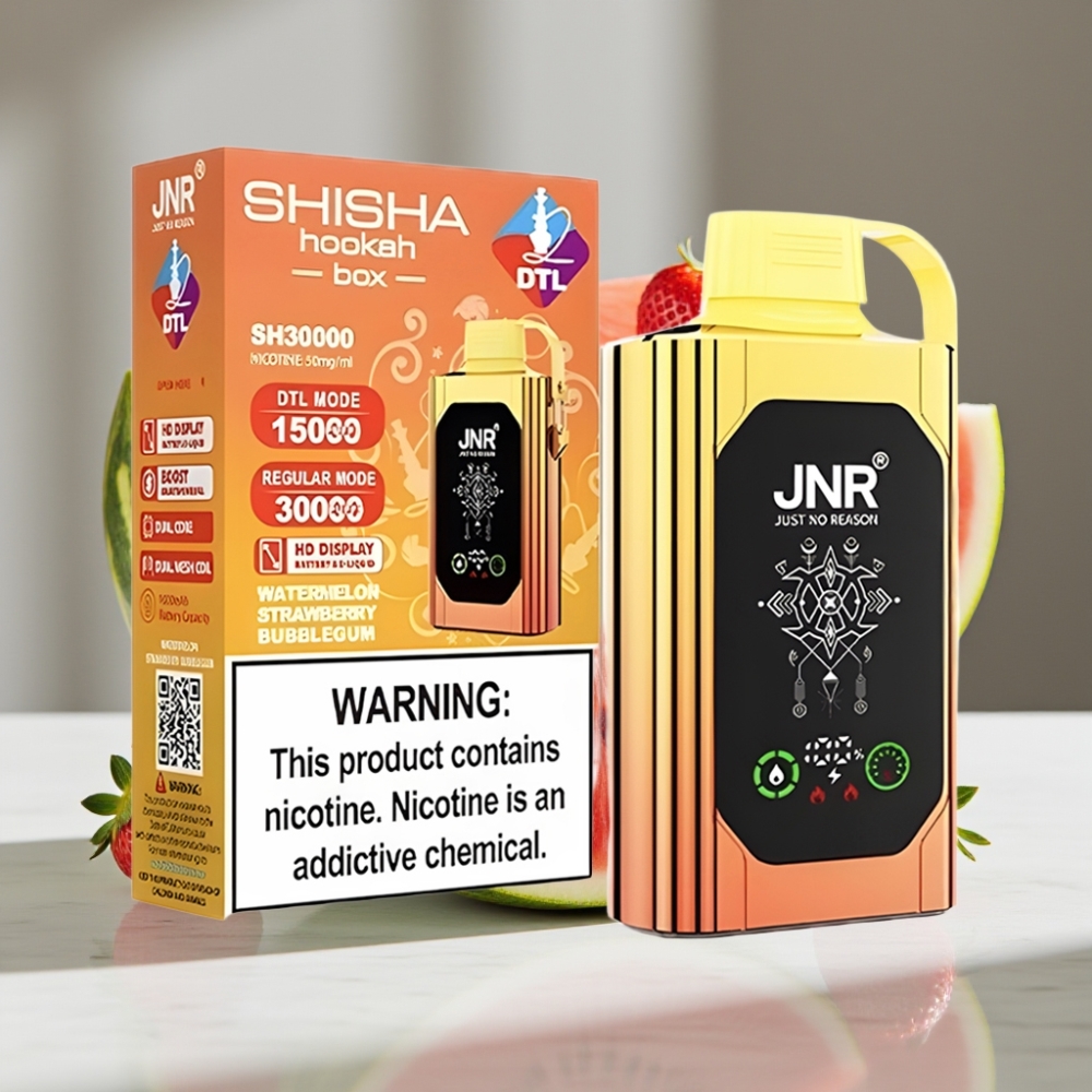JNR Shisha Hookah Box 20500 Puffs Disposable Vape – Watermelon Strawberry Bubblegum, HD Display, 25ml, Type-C
