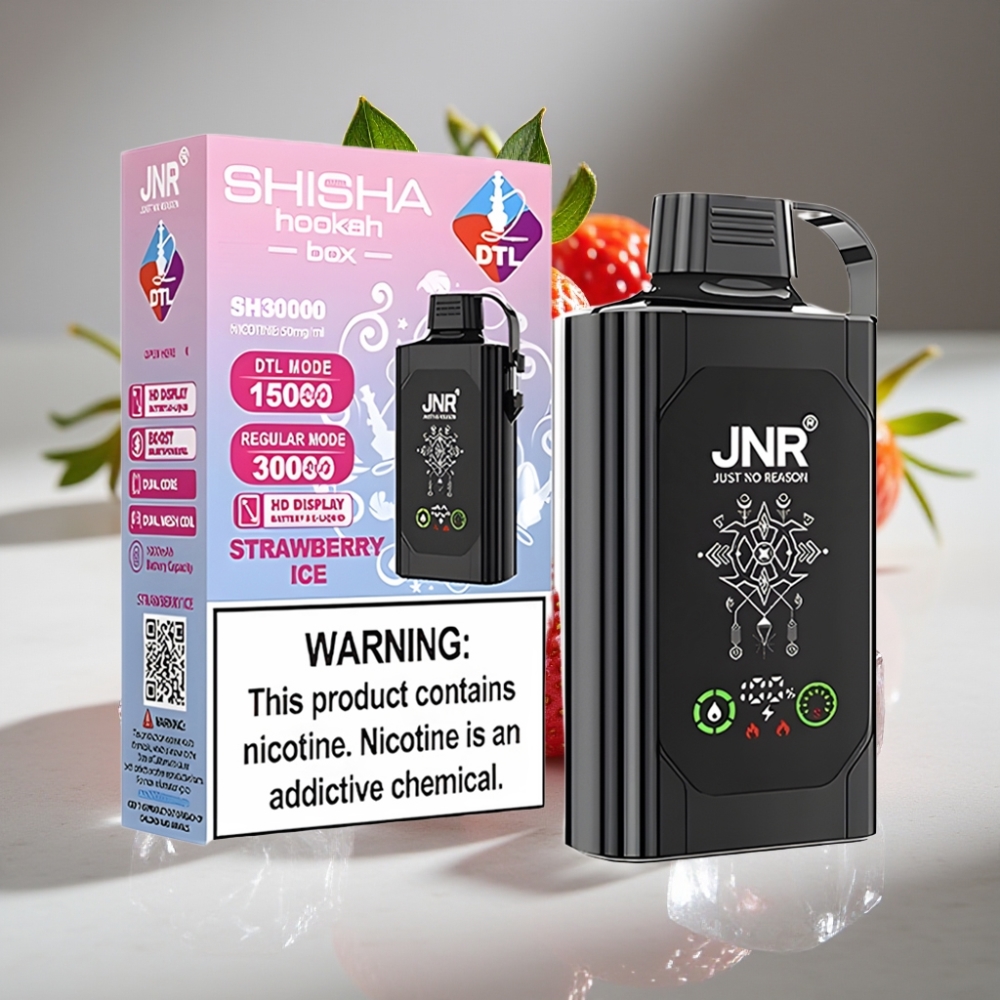 JNR Shisha Hookah Box 20500 Puffs Strawberry Ice Disposable Vape with HD Display & Type-C